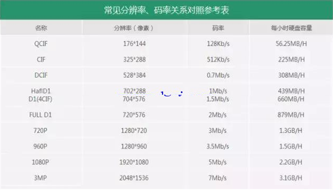 說到計算,我們要拿什么來計算呢?除了攝像頭數(shù)目、需要錄像的時間外,還有一個重要的數(shù)值:碼率! 一般情況下,分辨率越大,碼流呢也就越大,比如我們常用到的130W的攝像頭,碼流是2MB/S,也就是2048kbps。然后知道了碼流、時間、通道數(shù),我們就可以直接套用公式計算了。