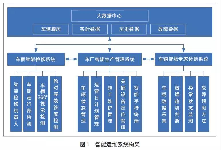 智能運(yùn)維系統(tǒng)是建立在設(shè)備基礎(chǔ)上的、以狀態(tài)修模式為主要發(fā)展目標(biāo)的智能化、數(shù)字化系統(tǒng),其依托大數(shù)據(jù)中心,結(jié)合設(shè)備履歷數(shù)據(jù),并借助實(shí)時監(jiān)控設(shè)備,采集和分析城市軌道交通車輛的運(yùn)行和檢修數(shù)據(jù),判斷設(shè)備故障趨勢,診斷設(shè)備的運(yùn)用健康狀態(tài),從而實(shí)現(xiàn)故障預(yù)警和分級報(bào)警,指導(dǎo)關(guān)鍵設(shè)備現(xiàn)場維修作業(yè)的智能化管理。