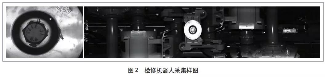 車底定位模塊分為面陣相機(jī)和線掃相機(jī) 2 部分,面陣相機(jī)用于定位車底設(shè)備,線掃相機(jī)用于采集車底設(shè)備圖像。此外,還應(yīng)用輪軸編碼器確保采集的車底圖像穩(wěn)定、不發(fā)生抖動。以圖 2 為 例,通過使用相機(jī)對車底設(shè)備進(jìn)行高清拍攝,實(shí)現(xiàn)對設(shè)備異常形態(tài)、設(shè)備異常變化的智能監(jiān)測,從而快速識別故障點(diǎn),確定故障位置及故障等級,給出故障判斷,引導(dǎo)人員使用與設(shè)備相對應(yīng)的檢修標(biāo)準(zhǔn)、工器具進(jìn)行維修,最終實(shí)現(xiàn)故障的快速診斷和準(zhǔn)確報(bào)警,提高檢修效率。