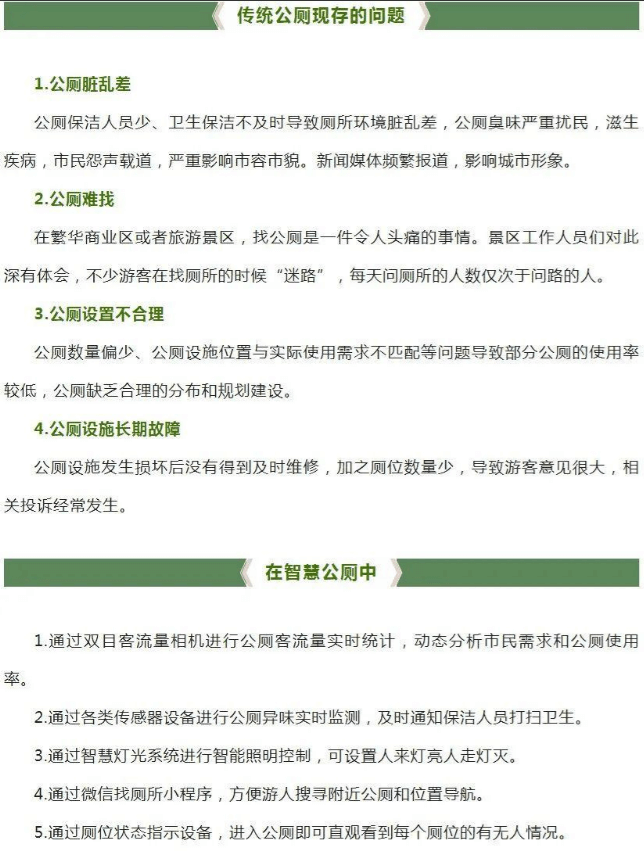 公廁是現(xiàn)代城市不可或缺的重要組成部分,它是城市公共設(shè)施一部分,它的智能化是“智慧城市”建設(shè)的一個(gè)重要標(biāo)志,也是衡量城市文明程度、管理水平的一項(xiàng)重要指標(biāo)。公廁數(shù)量的多少、服務(wù)功能的優(yōu)劣更是展示城市形象的重要窗口。