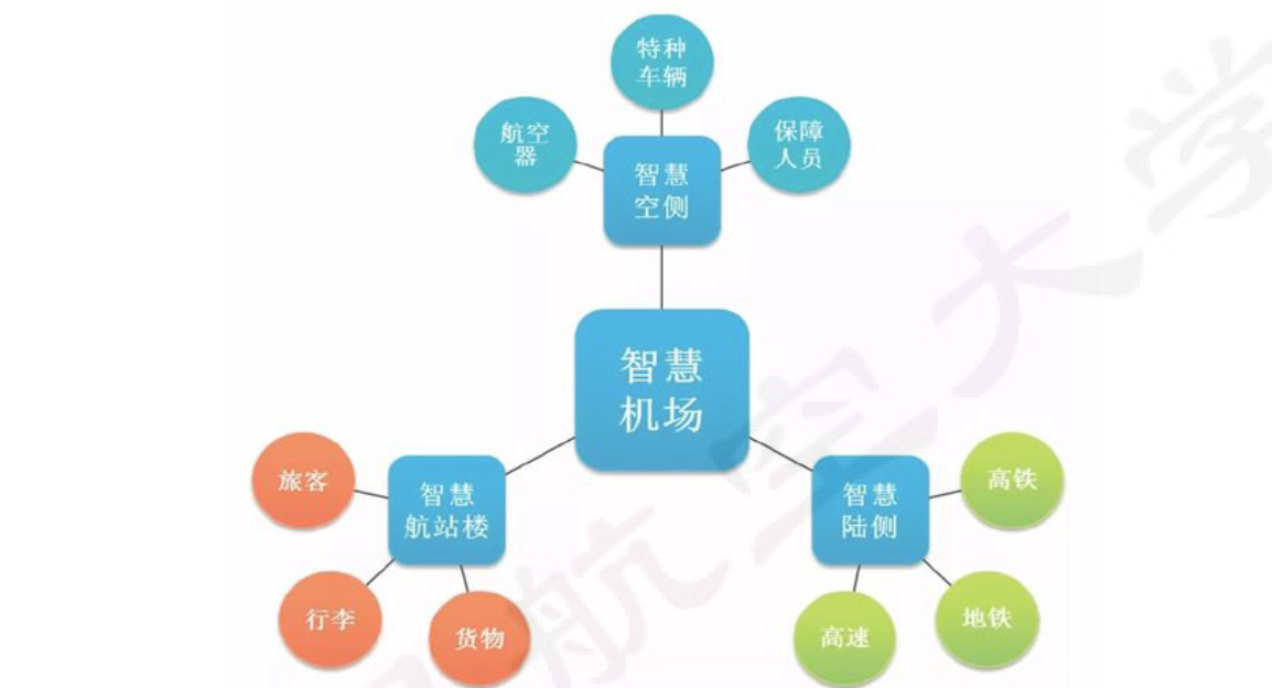 機(jī)場是一個(gè)涉及多項(xiàng)復(fù)雜業(yè)務(wù)的龐大基礎(chǔ)服務(wù)設(shè)施,包含了空側(cè)、航站樓、陸側(cè)等多項(xiàng)緊壩復(fù)雜的專業(yè)功京。從物理空間角度上分析,“智慧機(jī)場”包含了智慧航站樓、智慧陸側(cè)、智慧空側(cè)的建設(shè)。