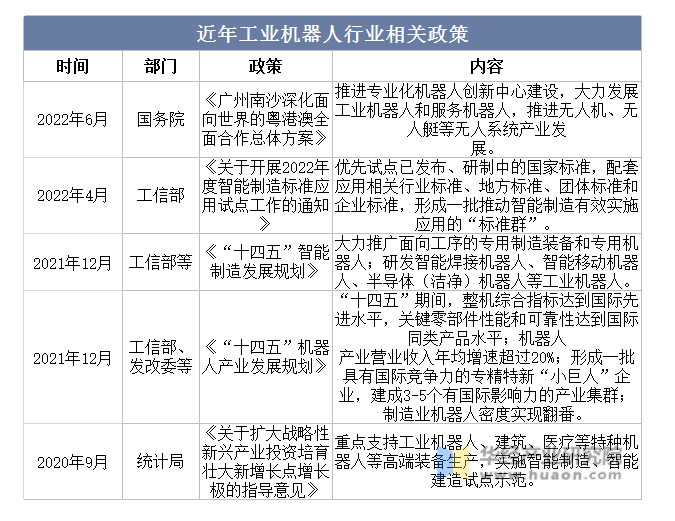 作為高端智能裝備和高新技術(shù)的代表,機器人技術(shù)已成為衡量國家科技創(chuàng)新和高端制造水平的重要指標(biāo),更是未來衡量國際競爭力的重要標(biāo)桿。在當(dāng)今國家制造業(yè)處于人口紅利逐漸消失的背景下,提升產(chǎn)業(yè)智能化升級將助力企業(yè)提高制造效率,近幾年我國也出臺了一系列針對性政策推動機器人行業(yè)發(fā)展。