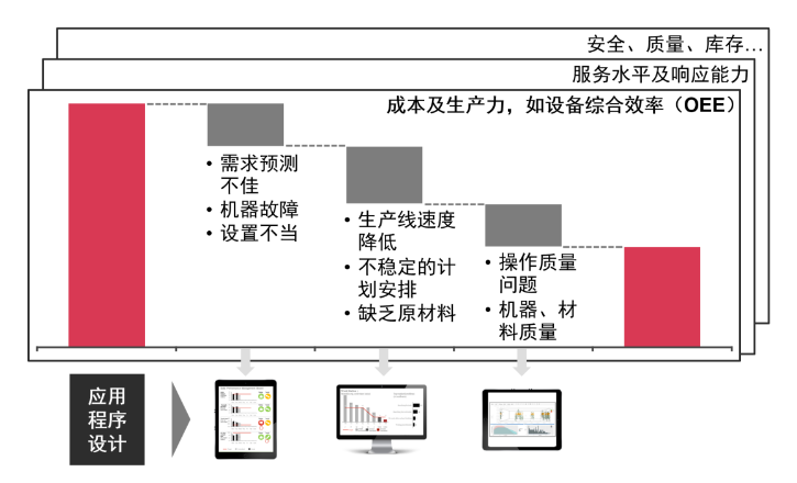 基于場景的智慧工廠“應用程序(App)”是從生產運營場景出發(fā),通過設計適用于解決工廠特定運營瓶頸與挑戰(zhàn)、基于用戶體驗功能設計的用例,進一步由數(shù)字化技術實現(xiàn)的智能解決方案。為了更好地打造基于工廠實際情況的智慧工廠解決方案,企業(yè)需要基于自身應用場景,系統(tǒng)地識別匹配工廠運營核心能力需求的用例。企業(yè)可以沿著價值鏈識別關鍵用例,例如,在供應場景下應用PFEP(Plan For Every Part,為每個產品做計劃)、自動補貨、齊套管理等用例提升物料管理效率;在生產執(zhí)行場景下應用數(shù)字化人員排班和工作指導、實時生產進度報告、在線制程質量管理等用例提升生產效率和質量管理。