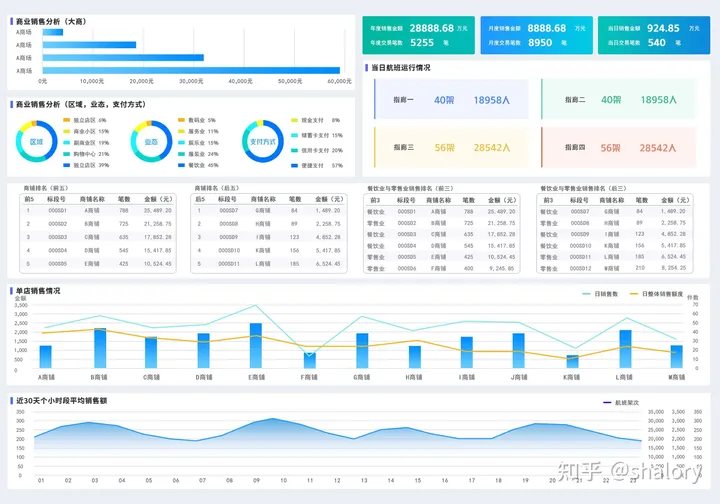 通過對不同店鋪的交易人數(shù)、交易單數(shù)、交易額、利潤額等指標多維度的分析,使機場運行管理者可以直觀的掌握機場商鋪的營收情況、不同區(qū)域的旅客流量情況和不同品類店鋪的消費情況,并且根據(jù)數(shù)據(jù)分析的結果,對機場內(nèi)的商鋪價格和航班離港機位的調(diào)整,促進旅客的消費和店鋪的營收,提高機場整體的盈利水平。