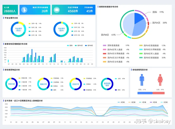 以安檢人數(shù),隨身行李、托運行李等情況進行統(tǒng)計分析,并且可以結合旅客的購票信息和以往購票和安檢記錄實現(xiàn)旅客人物畫像分析。并且,還可以結合疫情防控系統(tǒng),提前掌握旅客的行程路線,對旅客的乘機安全風險進行預測,從而保障機場的運行安全。