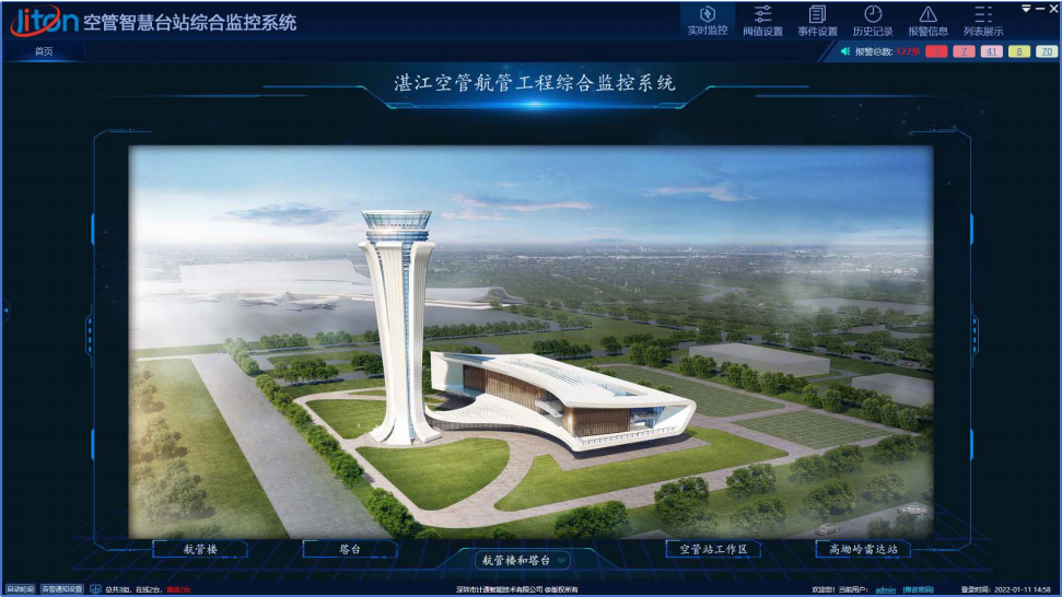 計通智能為高坳嶺雷達站、空管工作區(qū)VHF臺分別建設一套智能化綜合監(jiān)控系統(tǒng),通過建設統(tǒng)一的監(jiān)控和管理平臺,通過數(shù)據(jù)采集和網(wǎng)絡傳輸?shù)姆绞?,將各雷達站內(nèi)各自獨立的動力環(huán)境設備、防雷設施的運行指標、狀態(tài)、參數(shù)等數(shù)據(jù)集中存儲、查詢和監(jiān)控,對于異常數(shù)據(jù)進行多種方式報警,同時結(jié)合先進的視頻監(jiān)控技術對雷達站進行可視化監(jiān)控,實現(xiàn)數(shù)據(jù)圖形一體化監(jiān)控,從而縮短判斷故障的時限,提高解決故障的能力。