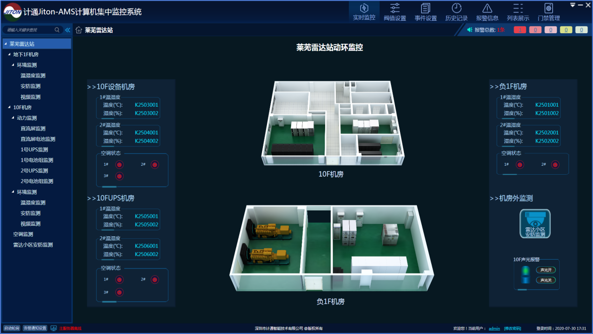 計通智能為汕頭雷達站搭建智慧空管綜合監(jiān)控平臺,將雷達站區(qū)域內(nèi)的所有設備監(jiān)控數(shù)據(jù)進行集中監(jiān)控管理,在實現(xiàn)防雷及動環(huán)系統(tǒng)集中監(jiān)控、集中管理、集中展示的運維管理目的。系統(tǒng)具備較高的穩(wěn)定、可靠、安全的特性,提供7*24*365不間斷的系統(tǒng)監(jiān)控及運行保障。